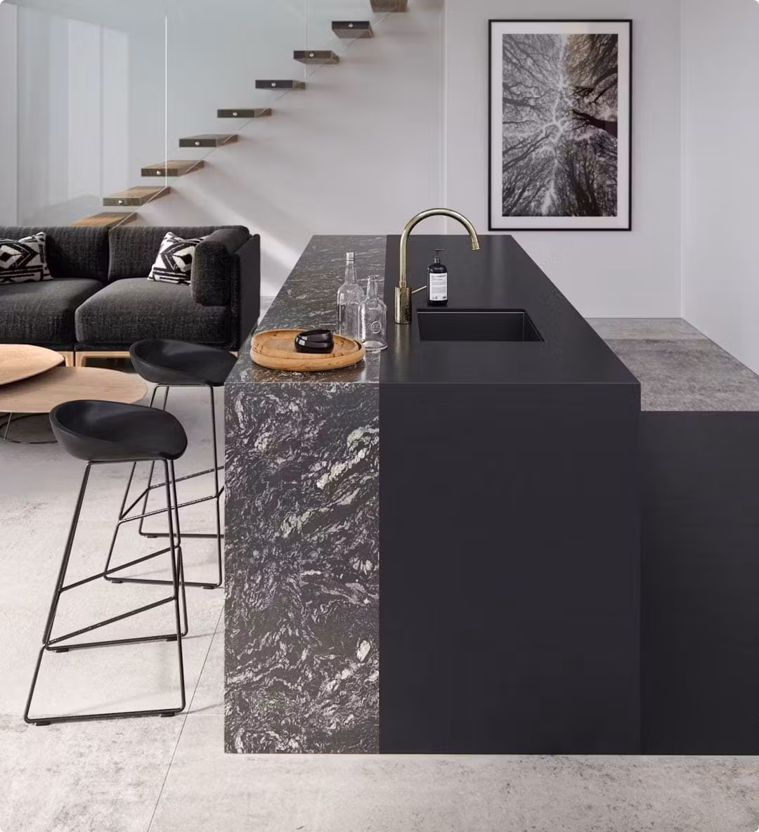 Granitos y cuarcitas con protección exclusiva antimanchas para disfrutar de espacios tan estéticos como funcionales.